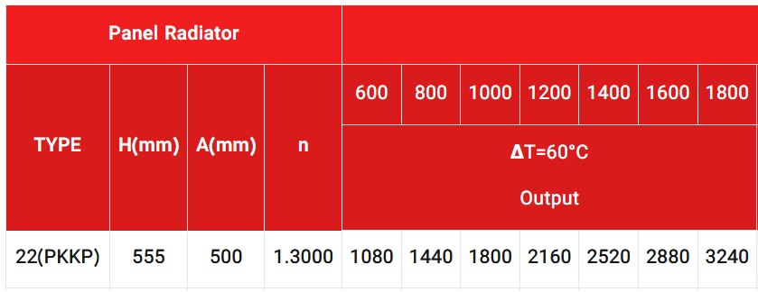 جدول ضریب حرارتی رادیاتور پنلی ایران رادیاتور بر اساس سایز و اختلاف دمای ۶۰ درجه