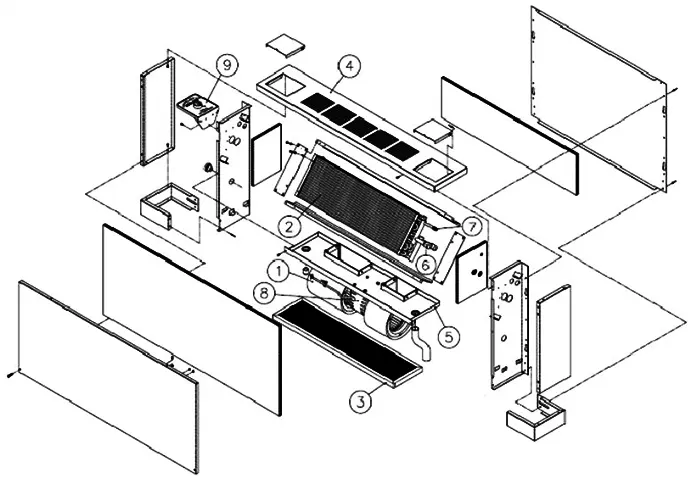 اجزای تشکیل دهنده فن‌کویل زمینی شیب‌دار ساراول مدل SF-SE-12
